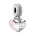 Charm pendentif en argent sterling, orné de zircons cubiques transparents et d'émail rose.
